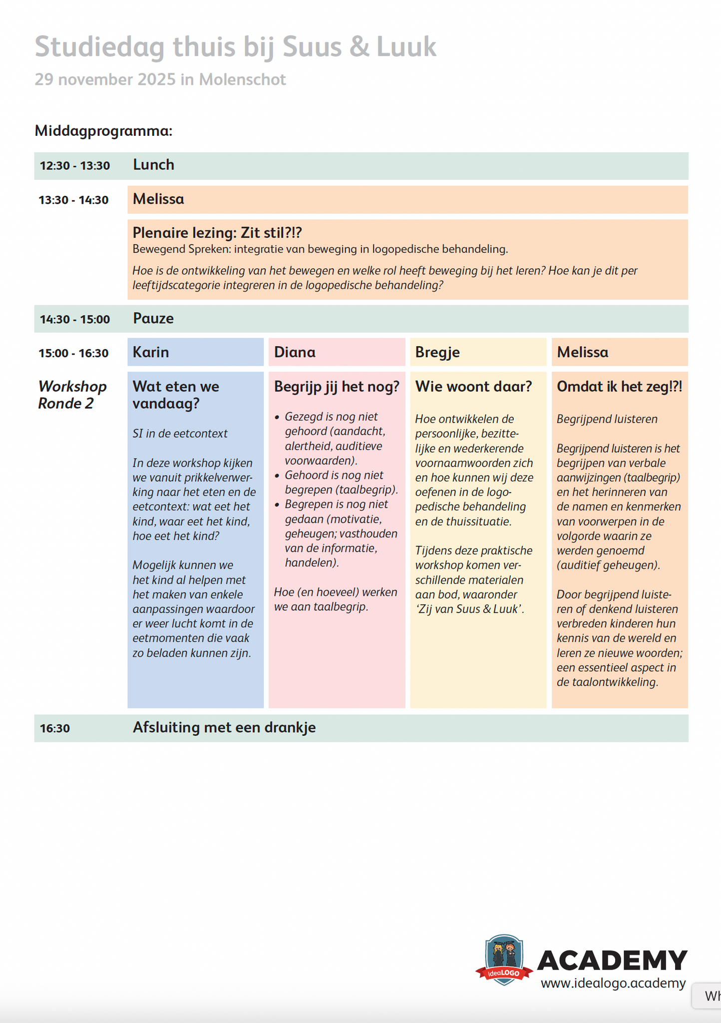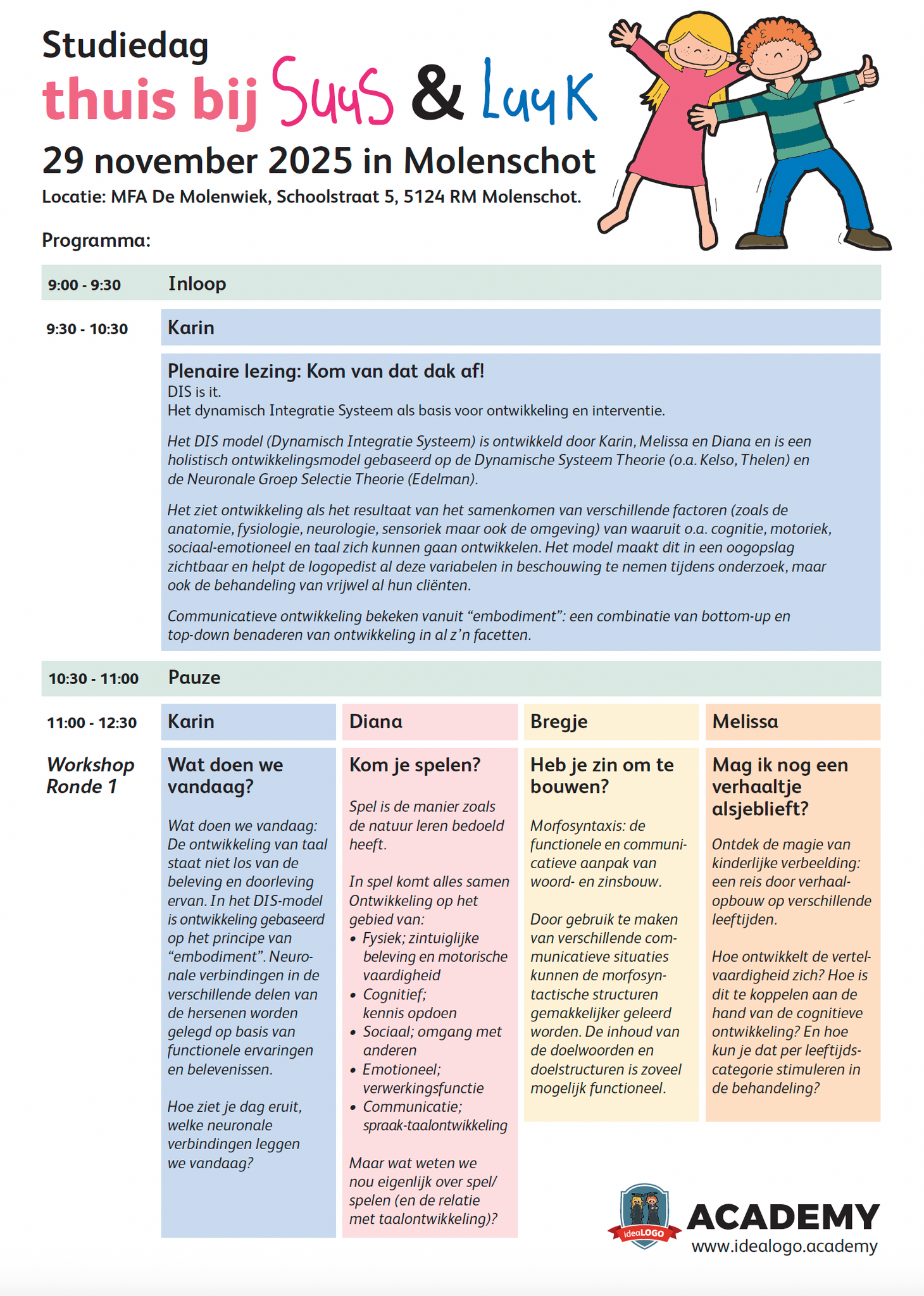 Op 30 mei 2026 organiseert ideaLOGO Academy weer een ouderwetse Suus & Luuk Studiedag! Dit keer in Noord Nederland (locatie wordt momenteel nog gezocht)